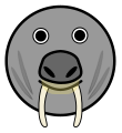 This features a cartoon-like drawing of an elephant with tusks. It has two large white tusks, one on the left side and another on the right side of its mouth. The elephant's eyes are depicted as black circles, giving it a playful appearance. The overall design is simple yet captivating, making it an interesting visual element.