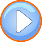 This features a round blue button with an orange circle in the center, which is used to indicate focus. Inside this circle, there is a triangular play symbol that represents the act of playing something on a device. This button could be found on various electronic devices such as computers or gaming consoles, and it serves as a visual cue for users to initiate playback. The combination of blue and orange colors creates an eye-catching contrast, making the button stand out and easily identifiable.