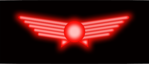 This features a red and white symbol with an orange circle in the center. This symbol is reminiscent of a phoenix, which is often associated with rebirth or renewal. The glowing design gives it a striking appearance, making it stand out against its dark background. The combination of colors and the shape of the symbol create a visually appealing and memorable image that can be appreciated by those who view it.