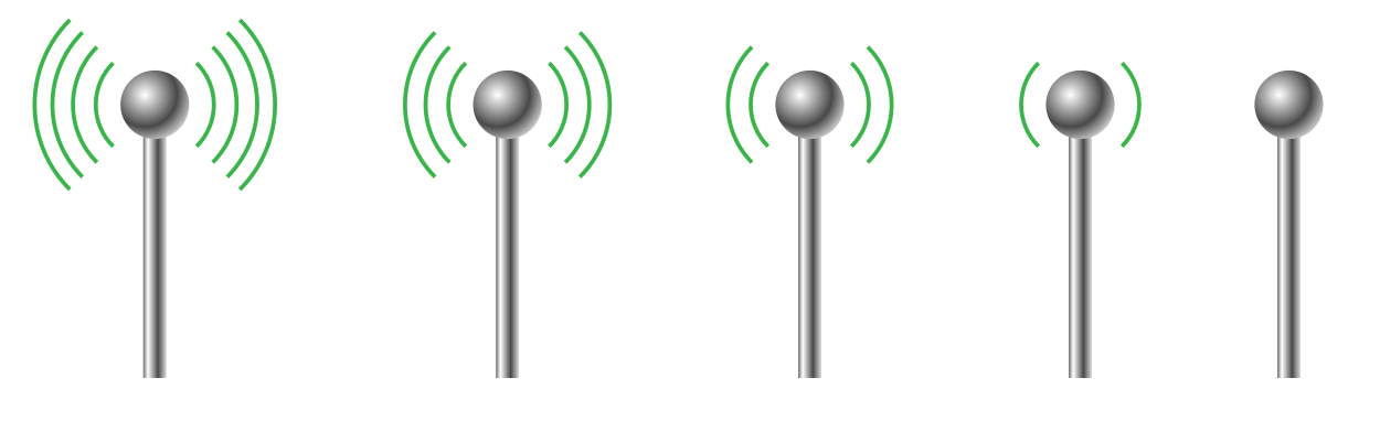 This features a row of five Wi-Fi signal icons, each with their own unique appearance. They are arranged in a horizontal line, with the first icon on the left side and the last one on the right side. Each icon is positioned at different heights, creating an interesting visual effect. The icons vary in size and shape, adding variety to the overall composition of the image.