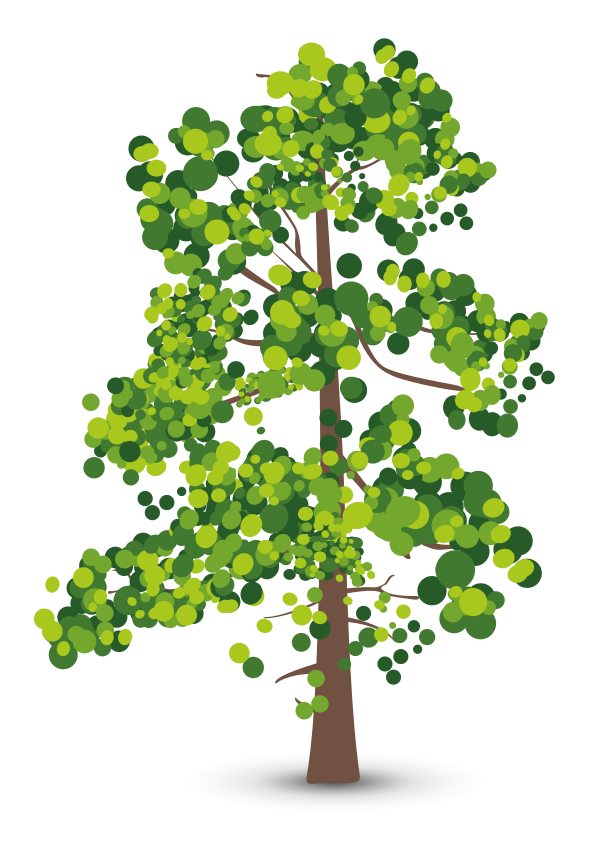 This features a stylized illustration of a tree with green leaves. The leaves are made out of monochromatic circles, giving the tree an interesting and unique appearance. The tree is depicted in silhouette form, which adds to its artistic charm. The overall composition of the image creates a visually appealing representation of nature's beauty.