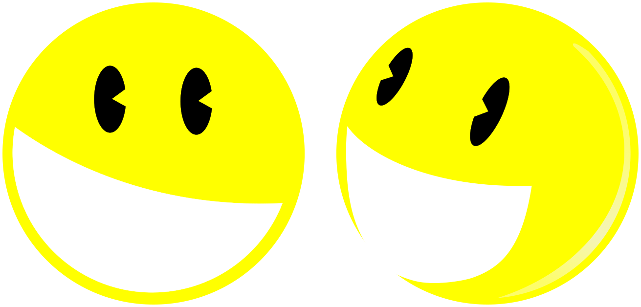 This features two yellow smiley faces, each with a pair of eyes and a mouth. They are positioned next to each other, creating an illusion that they are looking at one another. The smiles on their faces give the impression of happiness or joy. The overall scene is brightly colored and cheerful, making it an appealing visual for those who enjoy positive emotions.