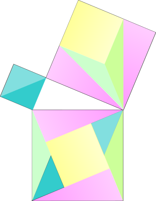 This features a colorful geometric shape made up of four triangles. Each triangle is colored differently, with one being yellow, another pink, and the remaining two blue. These triangles are arranged in such a way that they form a larger square-like structure. The combination of these colors creates an eye-catching and vibrant display.