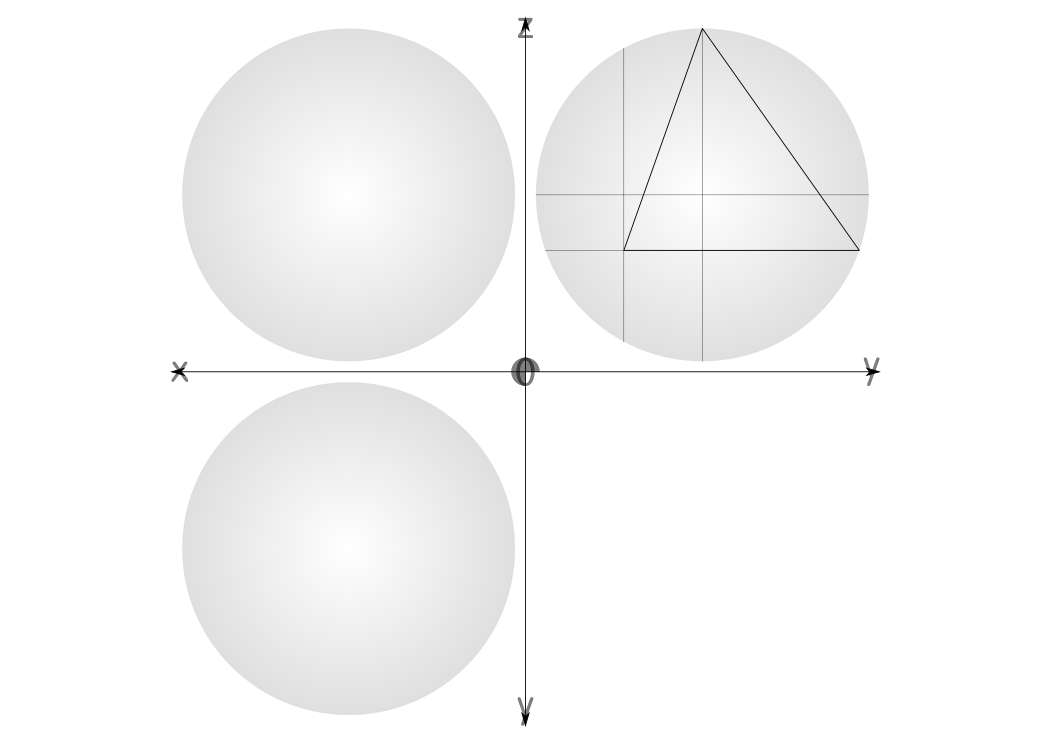 This features a series of four white spheres, each with different measurements. These spheres are placed in the center of a circle and are surrounded by a grid of lines that connect them to various points on the circumference. The lines are drawn at different angles and distances, creating an interesting pattern around the spheres. This arrangement suggests that the spheres may be used for measuring or analyzing specific properties related to their size and position within the circle.