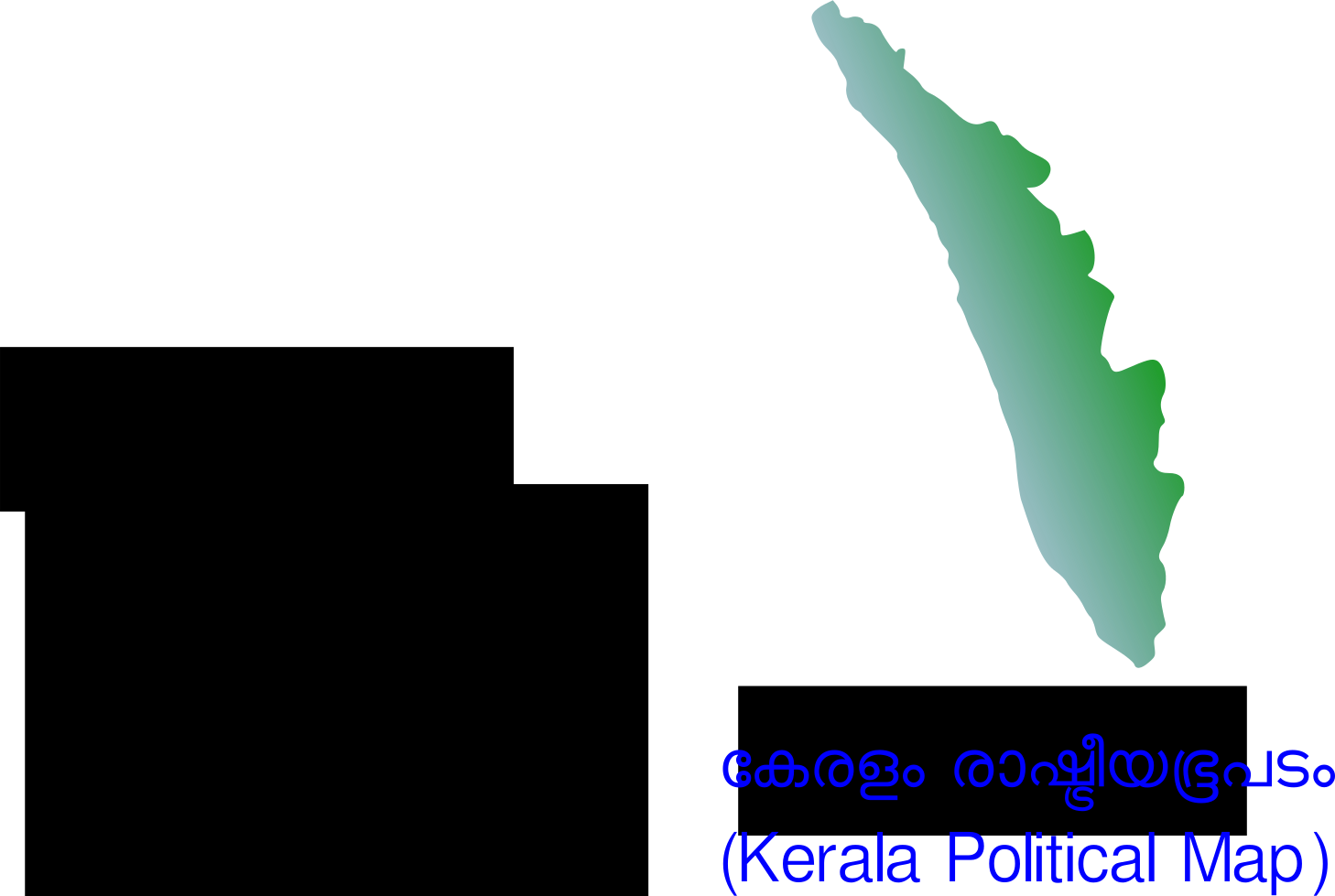 This features a political map of Kerala, a state in India. The map is displayed on a white background with the name "Kerala" written at the top. The map itself is green and blue, providing a clear visual representation of the region's boundaries. The colors used for the map are vibrant and easy to distinguish, making it an effective tool for understanding the geography of Kerala.