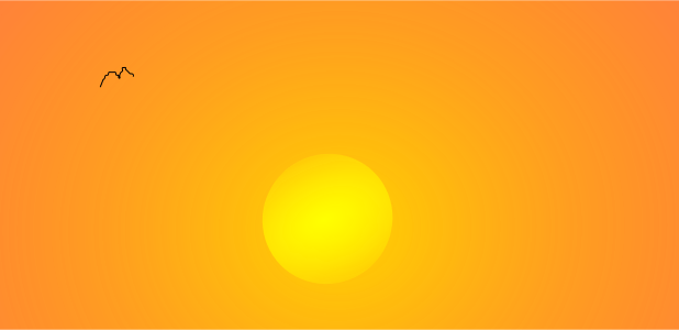 This features a beautiful sunset with the sun rising above the horizon. The sky is filled with warm, orange hues that create a serene atmosphere. In the foreground, there are two birds flying in the air, adding to the sense of motion and life in the scene. The birds appear to be soaring gracefully against the backdrop of the setting sun, creating an idyllic and picturesque moment.