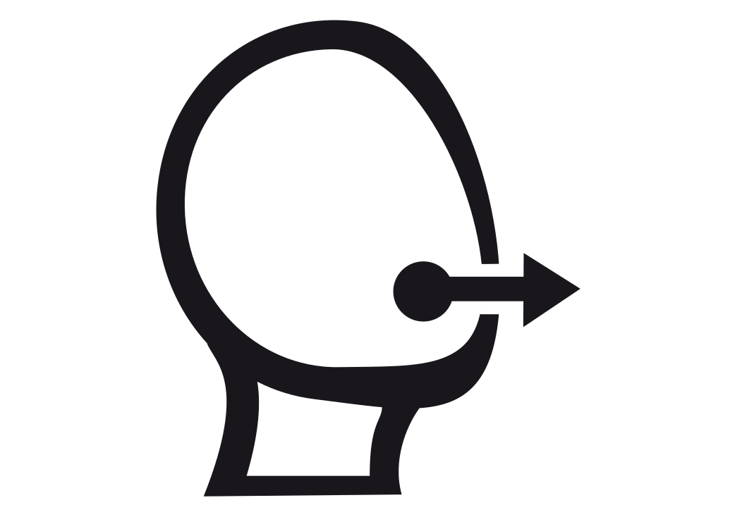 This features a black and white drawing of a head with an arrow pointing downwards. This drawing is likely used to represent the concept of listening or receiving information, as indicated by the arrow's direction. The head itself appears to be a simple outline, without any additional details or facial features. Overall, the image conveys a straightforward and minimalist representation of the idea it represents.