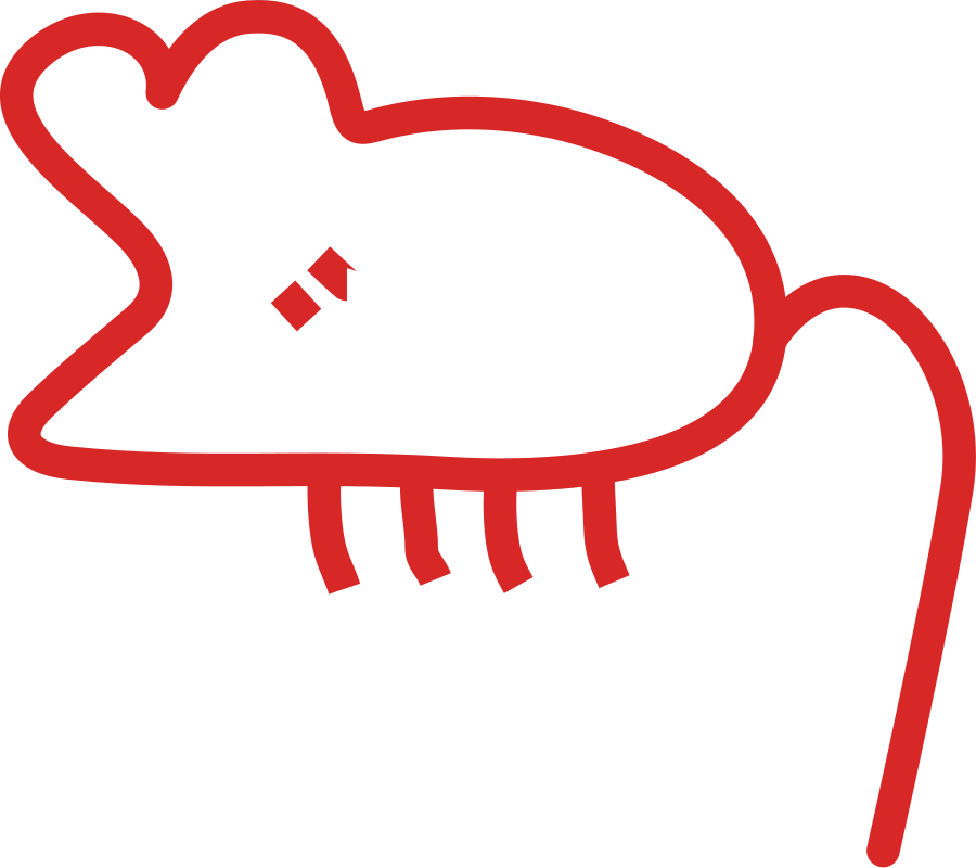 This features a red drawing of a mouse with its eyes closed. It is depicted in a cartoon-like style, giving it a playful and whimsical appearance. The mouse's body occupies most of the frame, while its tail extends off to one side. The overall composition of the image creates an engaging visual experience for viewers who appreciate creative artwork or are fond of mice as a subject matter.