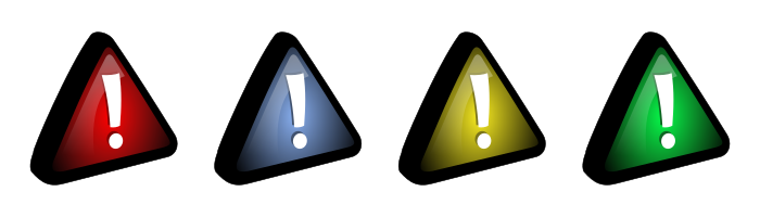 This features a series of four exclamation icons, each with different colors. These icons are placed in the upper left corner of the image and are arranged in a row. Each icon has a distinct color: red, blue, green, and yellow. They appear to be warning or cautioning against something, possibly related to an online platform or digital content. The arrangement of these icons creates a visually appealing and attention-grabbing display.