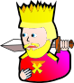 This features a cartoon character with a crown on his head, holding a sword in one hand and a shield in the other. He appears to be wearing a red robe, giving him an impressive and regal appearance. The character's facial expression is somewhat serious, suggesting that he might be a warrior or a leader of some sort. The overall design of the image gives it a comic book-like feel, with bright colors and bold lines creating a dynamic visual experience.