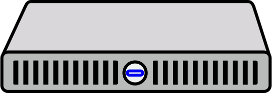 This features a large, square-shaped server with a blue button on the top. This device is likely used for storing and managing data in an organized manner. The server has multiple ports, making it suitable for various applications and storage needs. The design of this server suggests that it can be easily integrated into different environments, providing reliable service to users.