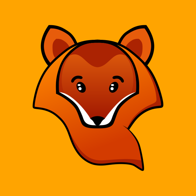 This features a cartoon fox with an orange coat and two pointy ears. It has shiny eyes, giving it a cute appearance. The fox is wearing a red scarf that covers its mouth, adding to the whimsical nature of the scene. This colorful and playful illustration could be used in various contexts such as children's books or educational materials.