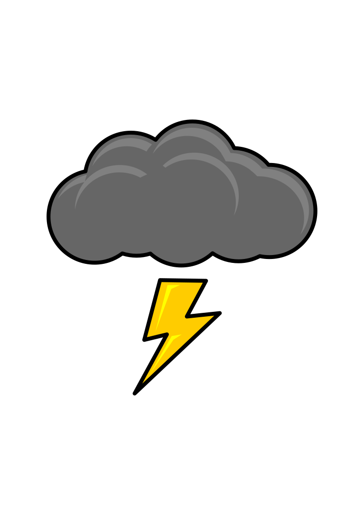 This features a cloudy sky with a dark-gray cloud that is producing a yellow thunder. This creates an interesting contrast between the dark and light colors in the scene. The cloud appears to be looming over the area, giving it a somewhat ominous appearance. The combination of the dark clouds and the bright yellow lightning bolt adds depth and visual interest to the image.