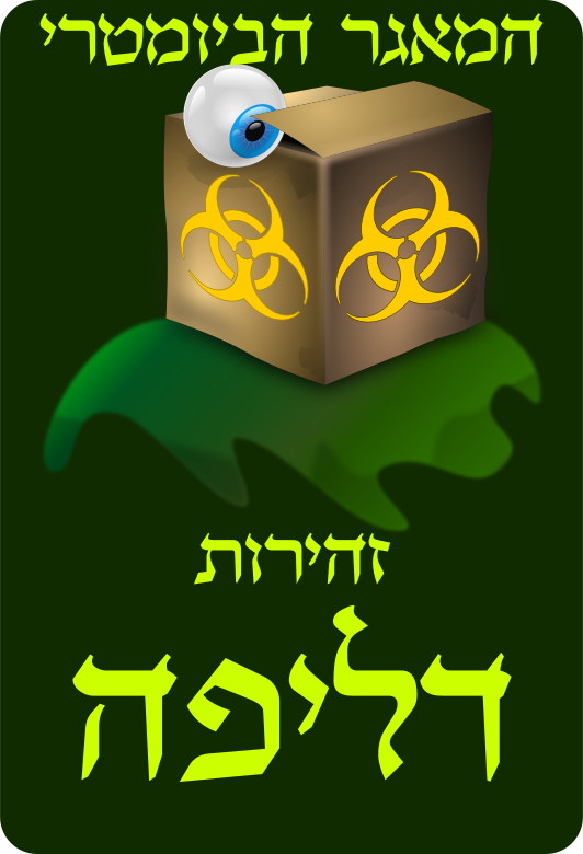 This features a sign written in Hebrew, which is the official language of Israel. The sign has an eye and a biohazard symbol on it, along with the words "no to biometric database." This message appears to be against the Israeli government's plan to implement a biometric database that would require citizens to provide their fingerprints and photographs within two years. The opposition to this plan is based on concerns about privacy and civil rights, as well as potential misuse of personal information by private companies or individuals. The sign also references the 2006 theft of an Israeli civilians' database containing 9 million records, which was subsequently published online and used for malicious purposes. The image conveys a strong message against the biometric database plan and emphasizes the importance of protecting citizens' privacy and civil rights.