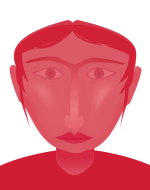 This features a red, three-dimensional drawing of a woman's face. She has a prominent nose and mouth, with her lips slightly parted. Her eyes are open, giving the impression that she is looking directly at the viewer. The drawing appears to be an artistic representation of a person's head, possibly for use in a logo or other design work.