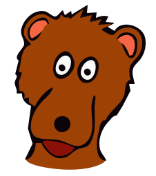 This features a cartoon bear with big eyes and a mouth, giving it an expressive appearance. It appears to be drawn as a place marker for children or possibly used in a creative project. The bear's facial expression is quite unique, making it stand out from typical depictions of bears. Its large eyes and open mouth give the impression that it might be playfully interacting with its surroundings or expressing emotions.