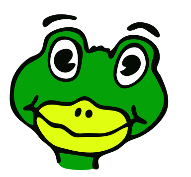 This features a green and yellow cartoon frog with big eyes, mouth open, and tongue sticking out. It appears to be drawn as a place marker for children or possibly used in an educational setting. The frog's facial expression is quite expressive, making it an engaging visual element. Its large eyes and open mouth give the impression of being friendly and approachable, which could make it appealing to young learners.