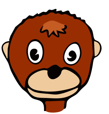 This features a cartoon-like drawing of a monkey with big eyes, giving it an expressive and cute appearance. The monkey's face is prominently displayed in the foreground, occupying most of the frame. Its large eyes are positioned close together, adding to its endearing charm. The overall design of the monkey gives off a playful and friendly vibe, making it an appealing character for children or anyone who enjoys cute animal illustrations.