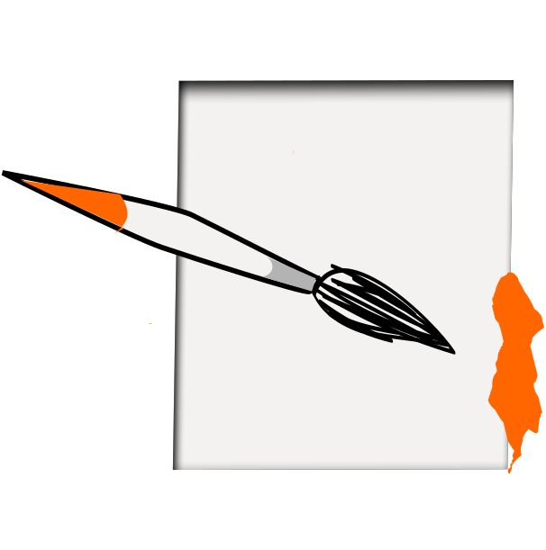 This features a pencil drawing of an orange, white and grey colored pencil. The pencil is positioned in the center of the drawing, with its tip pointing towards the top left corner. The drawing also includes a blank square shape on the right side of the image, which has been colored orange. This artistic representation captures the essence of a simple yet elegant object, showcasing both form and function through the use of color and line.