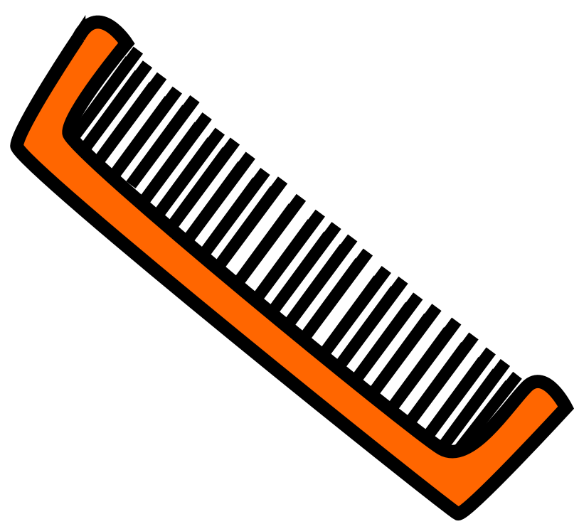 This features a toothbrush with an orange handle, which is placed on a white background. The toothbrush appears to be in the shape of a comb and has black bristles. It seems to be a close-up view of the toothbrush, emphasizing its unique design. The contrast between the orange handle and the white background creates an interesting visual effect that draws attention to the toothbrush.
