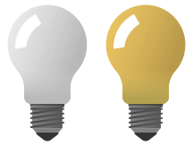 This features two light bulbs, one white and the other yellow. They are placed side by side in a visually appealing manner. The white light bulb is on the left side of the image while the yellow light bulb is positioned to its right. This illustration effectively showcases the difference between these two light bulbs in terms of color, making it an interesting and informative visual representation.