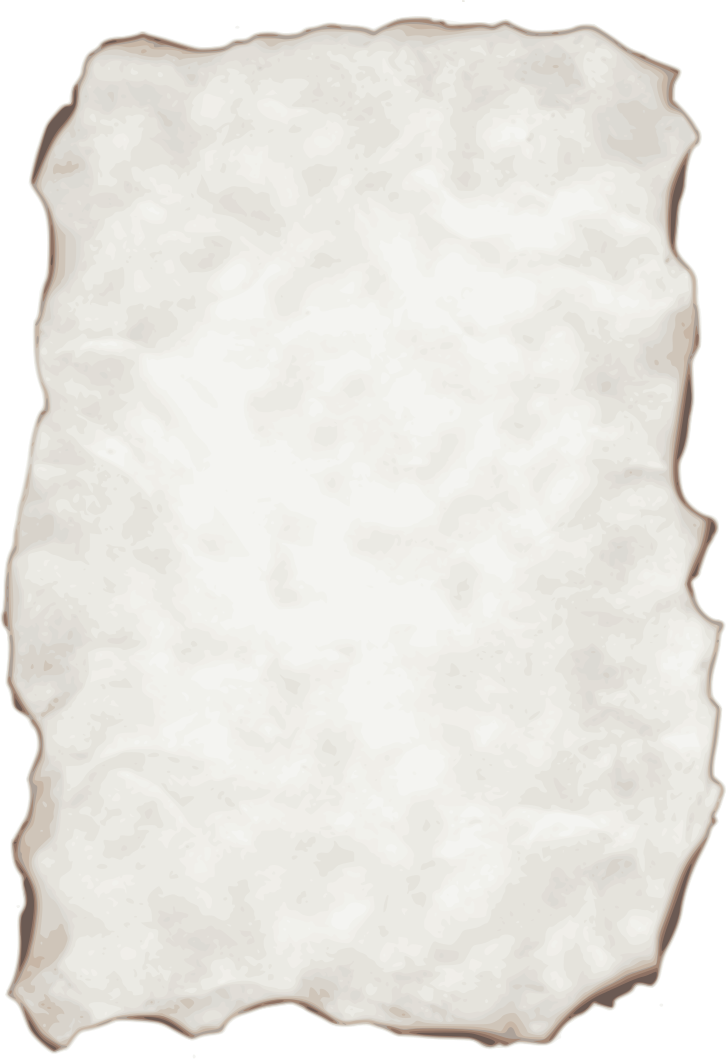 This features a piece of parchment paper with a worn and aged appearance. It appears to be an old, torn sheet of paper that has been exposed to the elements, giving it a weathered look. The paper is folded in half, creating a crease down its center. Despite its worn state, the paper still retains some of its original texture and shape, making it a unique and interesting artifact.