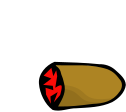 This features a cartoon drawing of a cigar sitting on the ground. It is depicted as a large, round object with red and orange colors, giving it an appetizing appearance. The cigar appears to be placed in front of a white background, which further emphasizes its size and shape. This creative representation of a cigar can evoke curiosity or amusement for those who view the image.