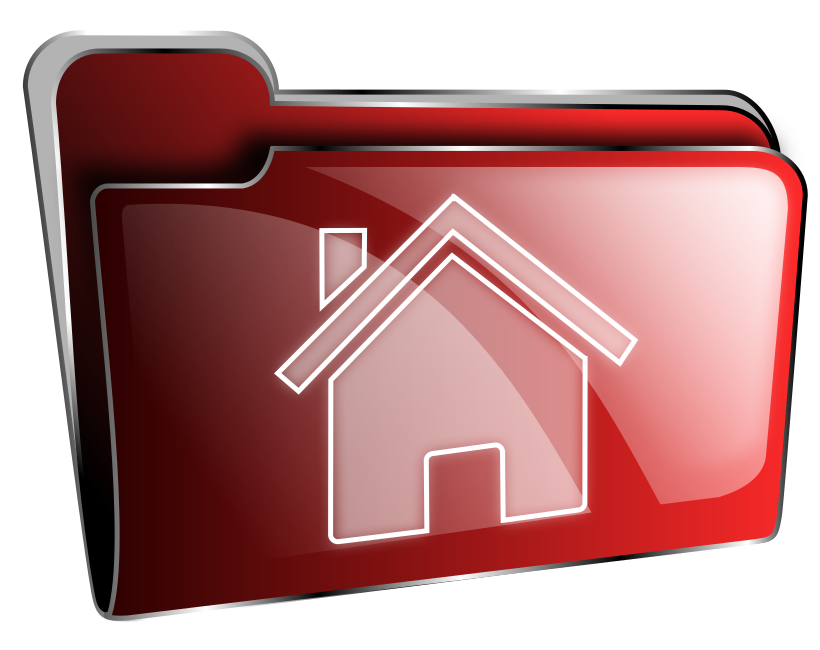This features a red folder with an icon of a house on it. This folder symbolizes the concept of home and is likely used to store important files or documents related to one's personal life. The house icon is white, contrasting against the red background, making it easily recognizable as a file folder. The folder appears empty at the moment, but its purpose is clear in representing a place where essential items are stored securely.