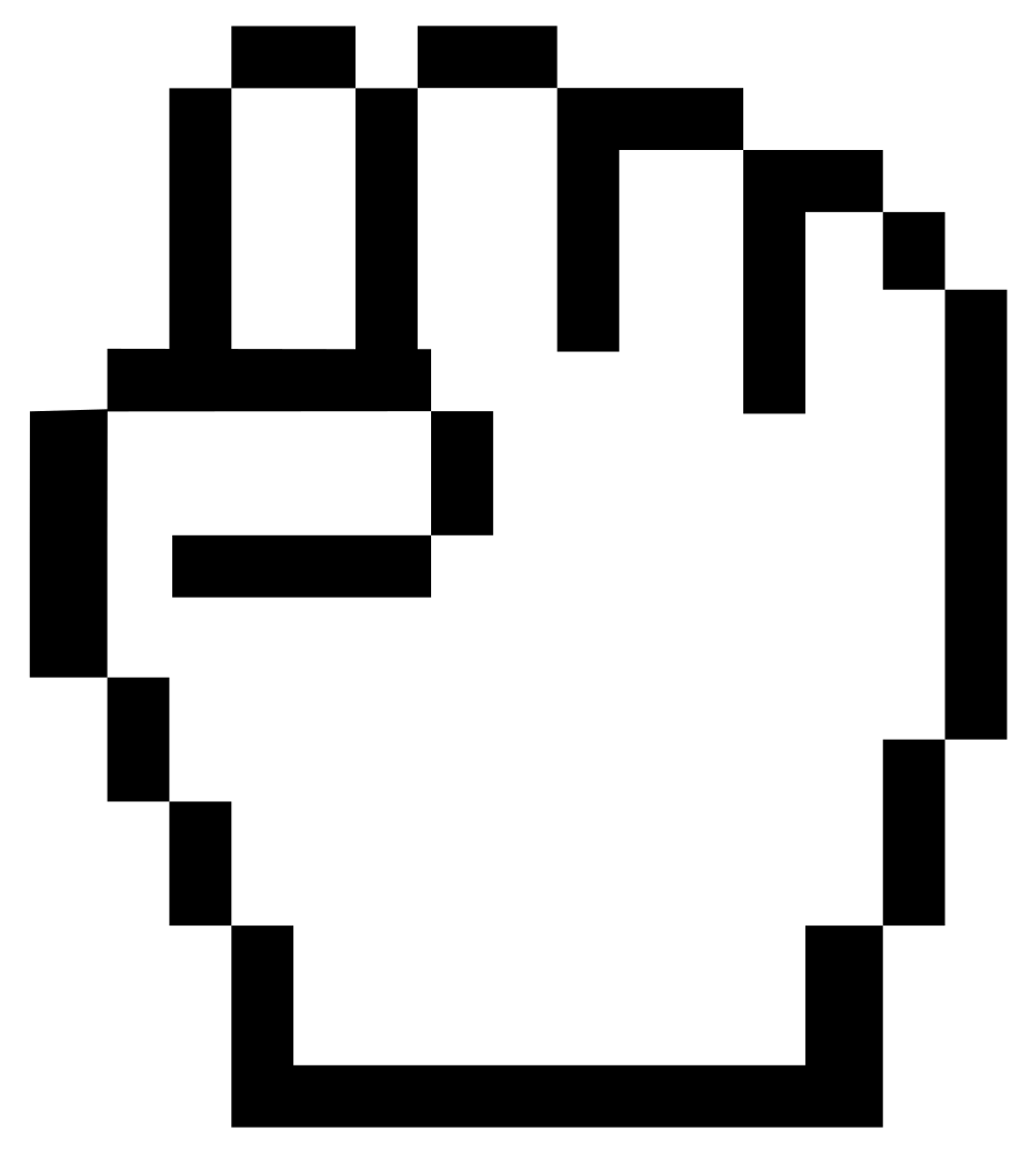 This features a close-up of an iconic computer mouse pointer, which is represented by a hand with a thumb up. This graphical representation of the mouse pointer is commonly used in various digital platforms and applications to indicate user interaction or selection. The design of this particular mouse pointer appears to be made from blocks or squares, giving it a unique and distinctive look compared to traditional representations of computer mice.