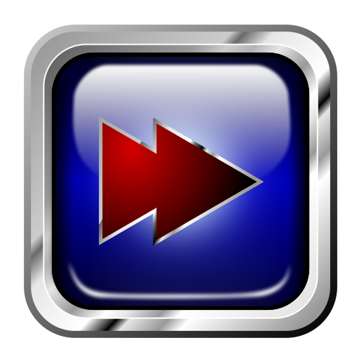 This features a blue square with a red arrow pointing downwards. This icon is likely used to represent the concept of moving forward or progressing in some context, such as in multimedia applications. The contrast between the blue and red colors creates a visually appealing design that draws attention to the arrow's directional purpose.