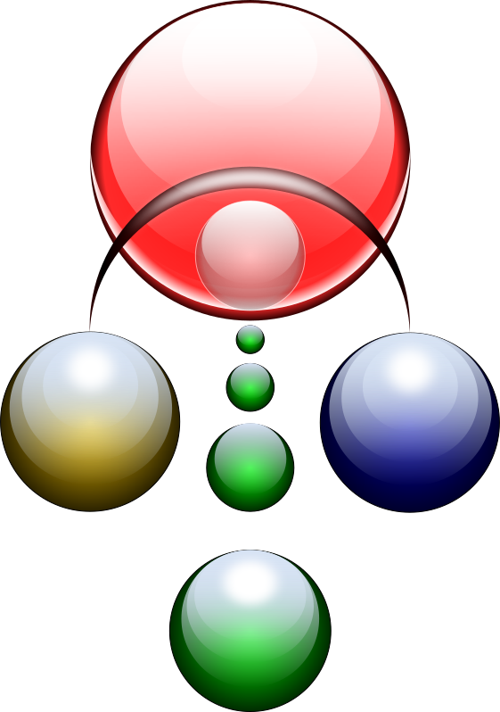 This features a group of four spheres, each with different colors and sizes. They are arranged in a circular formation, with the largest sphere at the center and the smaller ones surrounding it. The colors of the spheres include red, blue, yellow, and green, creating an eye-catching display. The arrangement of these spheres gives off a sense of harmony and balance, making them visually appealing.