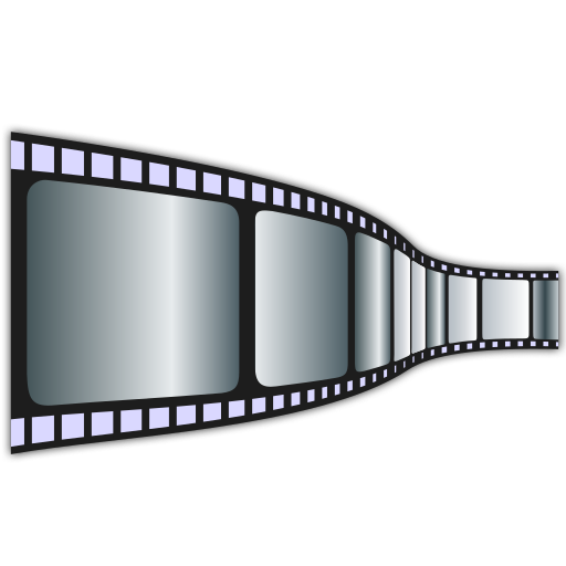 This features a curved filmstrip that appears to be getting smaller as it moves towards the right. This design element gives the impression of a continuous motion picture, with each frame becoming smaller and more compact as it progresses through the sequence. The filmstrip is displayed in a way that emphasizes its cinematic nature, making it an interesting visual representation of the art form.