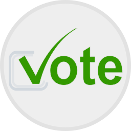 This features a green circle with the word "vote" written in white. Inside this circle, there is a green checkmark symbol that indicates approval or agreement. This could be used as an icon to represent voting or endorsement of something. The design is simple and clean, making it easy to recognize and understand.