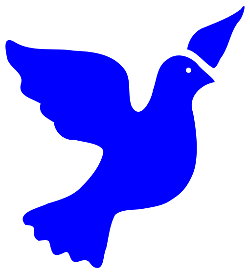 This features a blue dove with an open beak, symbolizing peace. The dove is positioned in the center of the image and appears to be flying or soaring through the air. Its wings are spread out, giving it a sense of freedom and grace. The overall color scheme of the image is predominantly blue, which adds to the serene atmosphere of the scene.