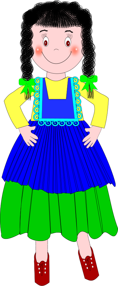This is a completely free image A cartoon girl with a blue dress and red shoes that you can download, post, and use for any purpose.