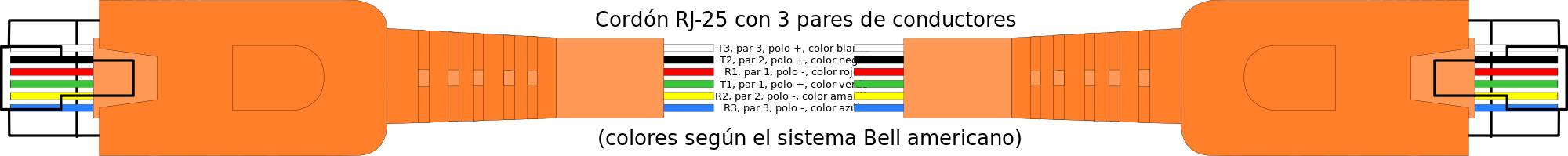 This features a large orange cable with several wires running through it. Above the cable, there is a sign that reads "Cable de 100 metros con 32 conductores". This suggests that the cable has multiple conductors and is designed for long-distance transmission. The presence of these wires indicates that this cable may be used to transmit data or power over great distances.