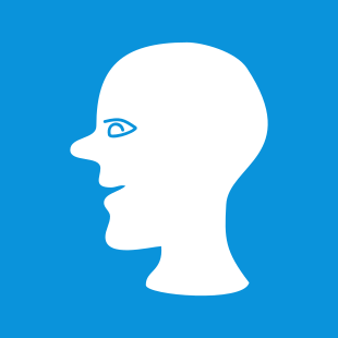 This features a blue background with an outline of a white head, which appears to be a silhouette. This silhouette is smiling and has a large nose, giving it a unique and playful appearance. The overall design gives the impression that this could be an avatar or icon for a character or concept.