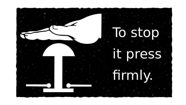 This features a sign that says "To stop it press firmly." This message is displayed in bold letters, with the words "it" and "press" underlined. The sign also has an arrow pointing towards a button or switch, indicating where to apply pressure for the desired action. The overall design of the sign suggests that it is meant to be easily understood by users, providing clear instructions on how to operate the device in question.