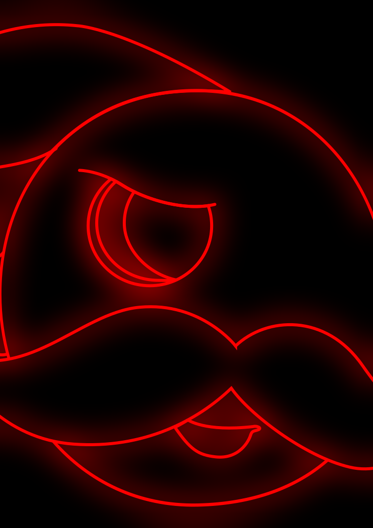 This features a red drawing of an angry face with a mustache. The face is made up of two circles, one on top and the other below, creating a distinctive appearance. The mustache is drawn in a way that it appears to be pointing downwards, adding to the overall expression of anger or displeasure. This artistic representation of an angry face with a mustache can evoke various emotions and interpretations depending on the viewer's perspective.