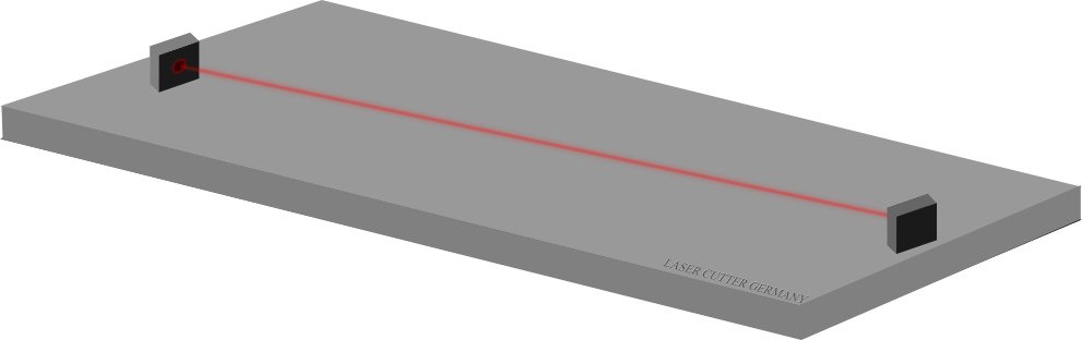 This features a gray, rectangular object with a red line drawn on it. This object appears to be made of concrete or a similar material and is placed on top of a table. The red line on the surface suggests that this could be a cutting board for a laser cutter, which would allow precise measurements and cutting of materials using a laser beam. The overall appearance of the image gives an impression of precision and craftsmanship in its design.