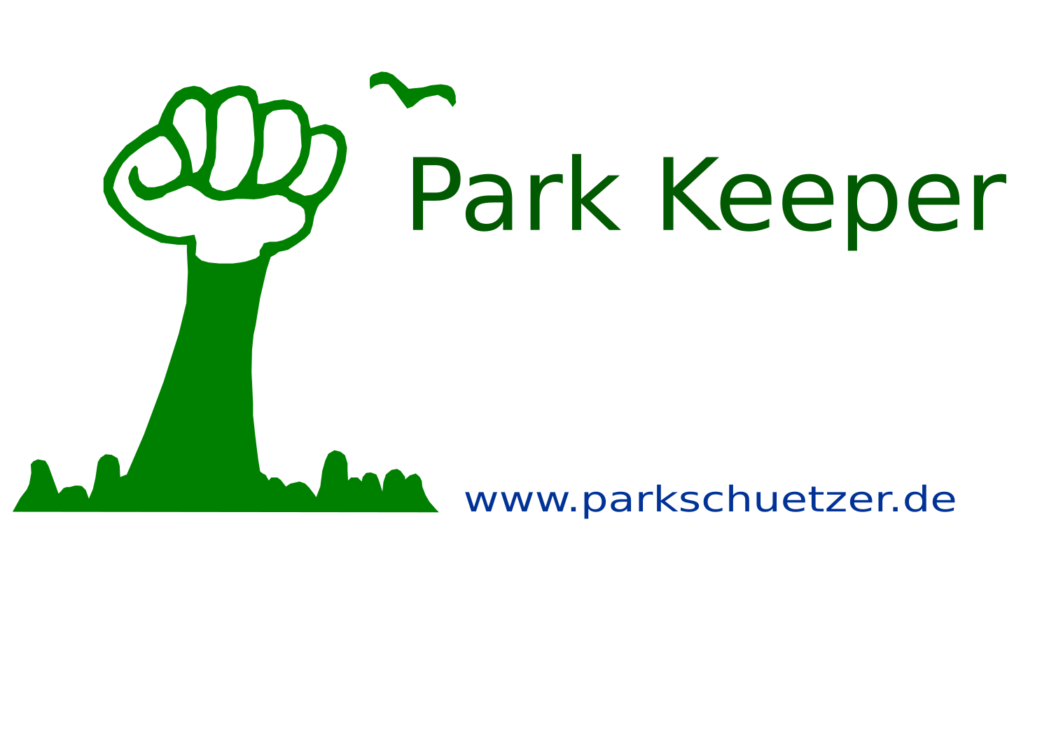 This features a green fist with the words "Park Keeper" written on it. Above the fist, there is a bird flying in the sky, adding to the overall visual appeal of the logo. The design appears to be promoting an organization or service related to parks and outdoor spaces.
