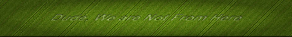 This is a green background with white text that reads "Dude, we are not from here." This message is displayed in the upper left corner of the picture. The rest of the image appears to be empty and unoccupied, giving it an open and vast feel.