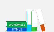 This features a collection of books stacked on top of each other, with the titles being related to web development. There are five books in total, with one book titled "HTML" and another titled "WordPress." These books appear to be arranged in a visually appealing manner, possibly for display or as part of an educational setting. The arrangement of these books suggests that they may be used by individuals who are interested in learning about web development and related topics.