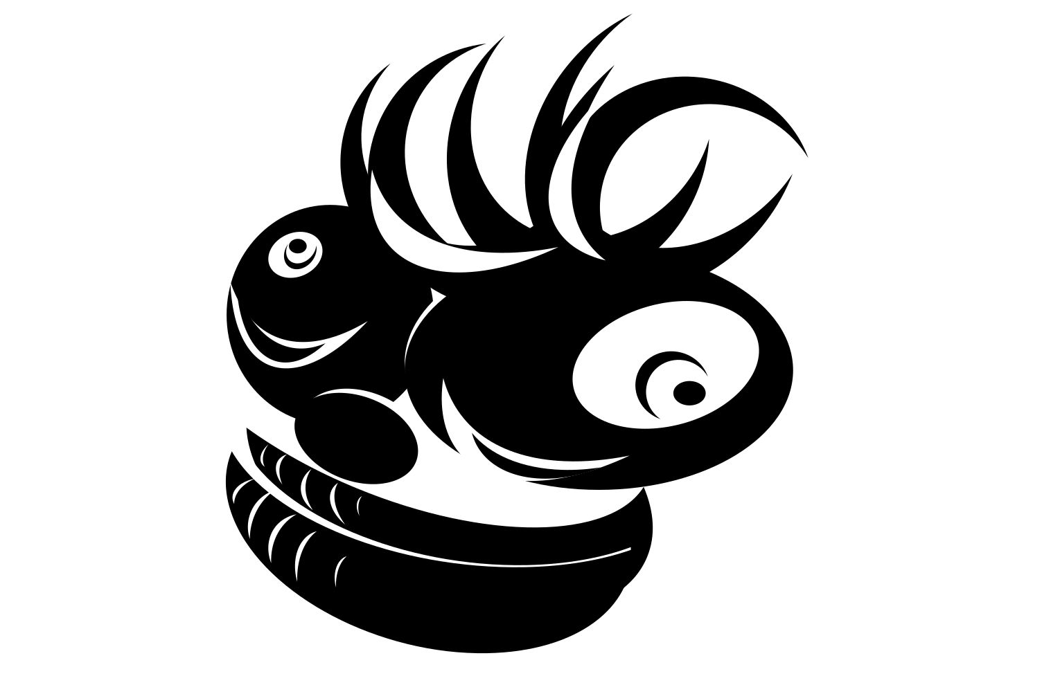 This features a black and white drawing of an animal, possibly a fish or a monkey. It is depicted in silhouette form with its head turned to the side. The animal's body appears to be curled up, giving it a somewhat unsettled appearance. The drawing has been skillfully executed, capturing the essence of the subject while maintaining a simple and minimalist style.