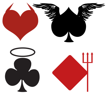 Tags: angel, card, club, devil, diamond, halo, heart, horn, spade, suit, trident, wing, suits card