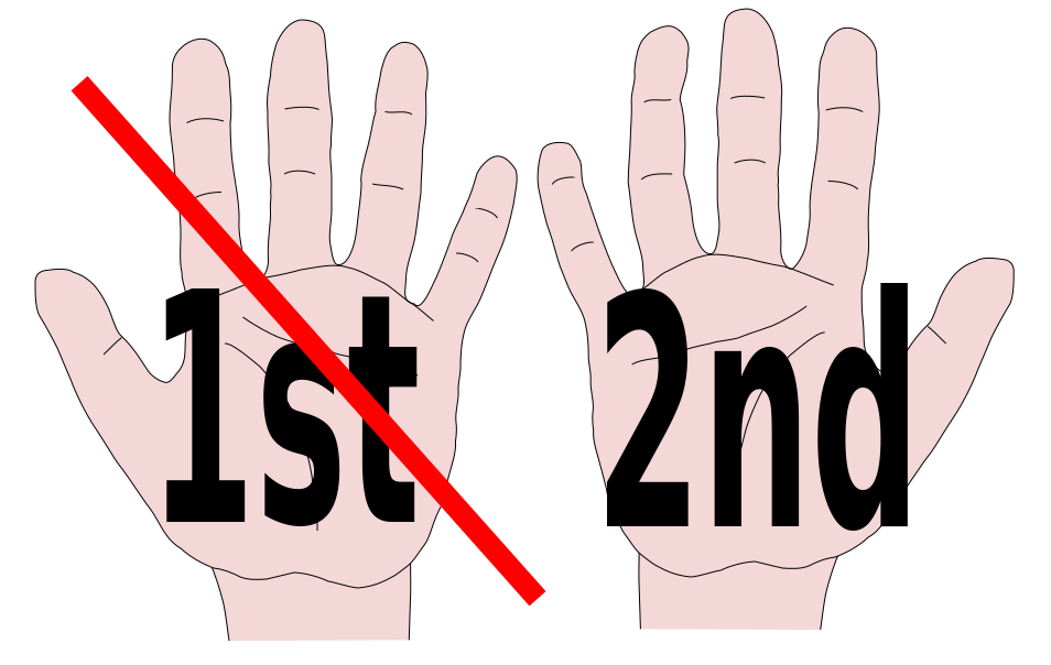 This features two hands with the number "1" written on one hand and a red circle with the word "No" written on it. This indicates that the person is not allowed to touch or interact with the other hand, which has the number "2" written on it. The hands are positioned close together, emphasizing the restriction placed upon them.