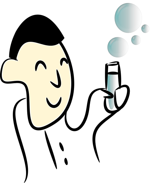 This features a cartoon character, possibly a man or a robot, holding a glass tube with bubbles in it. The character appears to be smiling and is wearing a lab coat, suggesting that they might be a scientist or researcher. The drawing of the character has a friendly and approachable demeanor, making it an appealing visual for children or those interested in science.