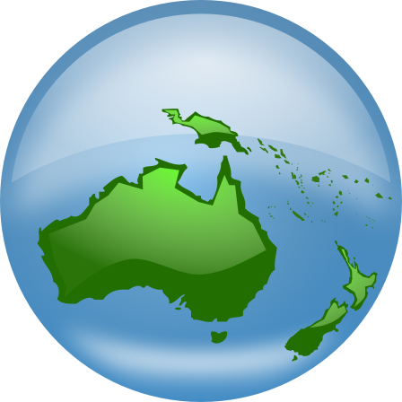 This features a large, round globe with the continents of Australia and New Zealand prominently displayed. The globe is blue in color, giving it an appealing appearance. The countries are depicted in green, making them stand out against the background. This unique representation of the world emphasizes the importance of these two nations within the global context.