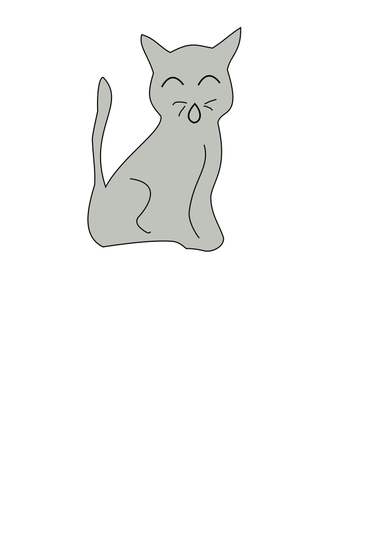 This features a cartoon drawing of a cat sitting on the ground. The cat is positioned in the center of the scene, and it appears to be smiling or making a funny face. The background consists of a plain white wall that provides a clean and uncluttered backdrop for the cat's image. This simple yet charming illustration captures the viewer's attention with its playful depiction of a feline character.