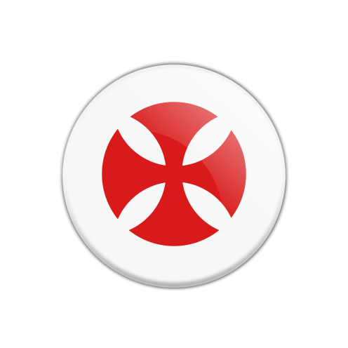 This features a red and white circular design, which is reminiscent of the Templar cross. This symbol has been used for centuries by various organizations and groups, including the Knights Templar, who were a medieval Christian military order. The red circle in the center of the design represents the cross, while the white background adds contrast to the overall appearance. The circular shape of the image suggests that it could be a button or a decorative piece, possibly used for identification or as a symbol of affiliation with an organization or group.